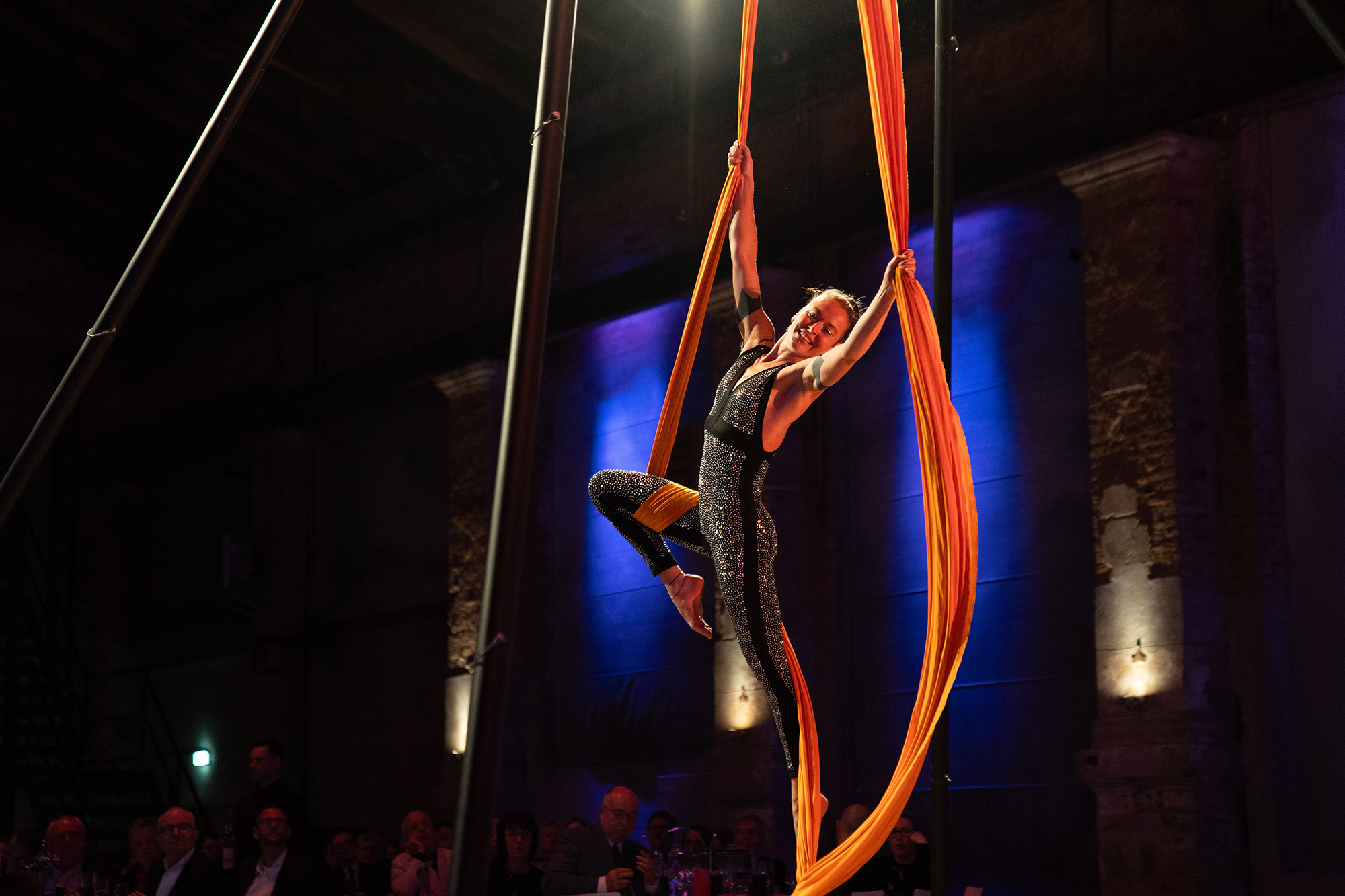 Schwerelosigkeit, Eleganz und Spannung vereinen sich in den Auftritten unserer international gefragten Luftakrobatin. Mit eindrucksvollen Performances entführt sie das Publikum in eine Welt voller Magie, Poesie und Faszination. Jede Bewegung erzählt eine Geschichte – mal kraftvoll und dynamisch, mal filigran und gefühlvoll.