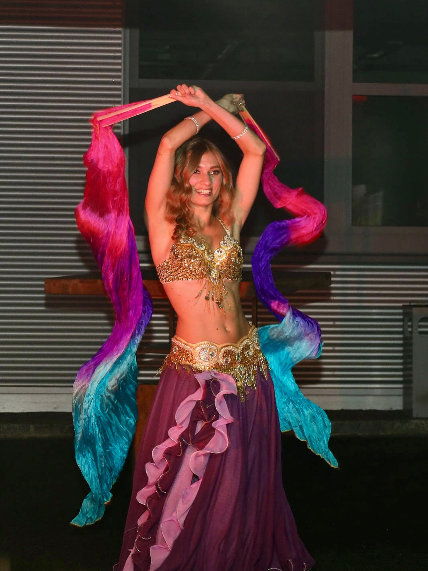 Ein besonderes Highlight ist der LED-Tanz mit Fächern und Flügeln. Leuchtende Requisiten verwandeln jede Bühne in ein spektakuläres Lichtermeer. Die Show kann klassisch-orientalisch präsentiert werden, modern-dynamisch interpretiert oder als kreative Kombination beider Stile – für maximale Flexibilität und Wirkung auf jedem Event.