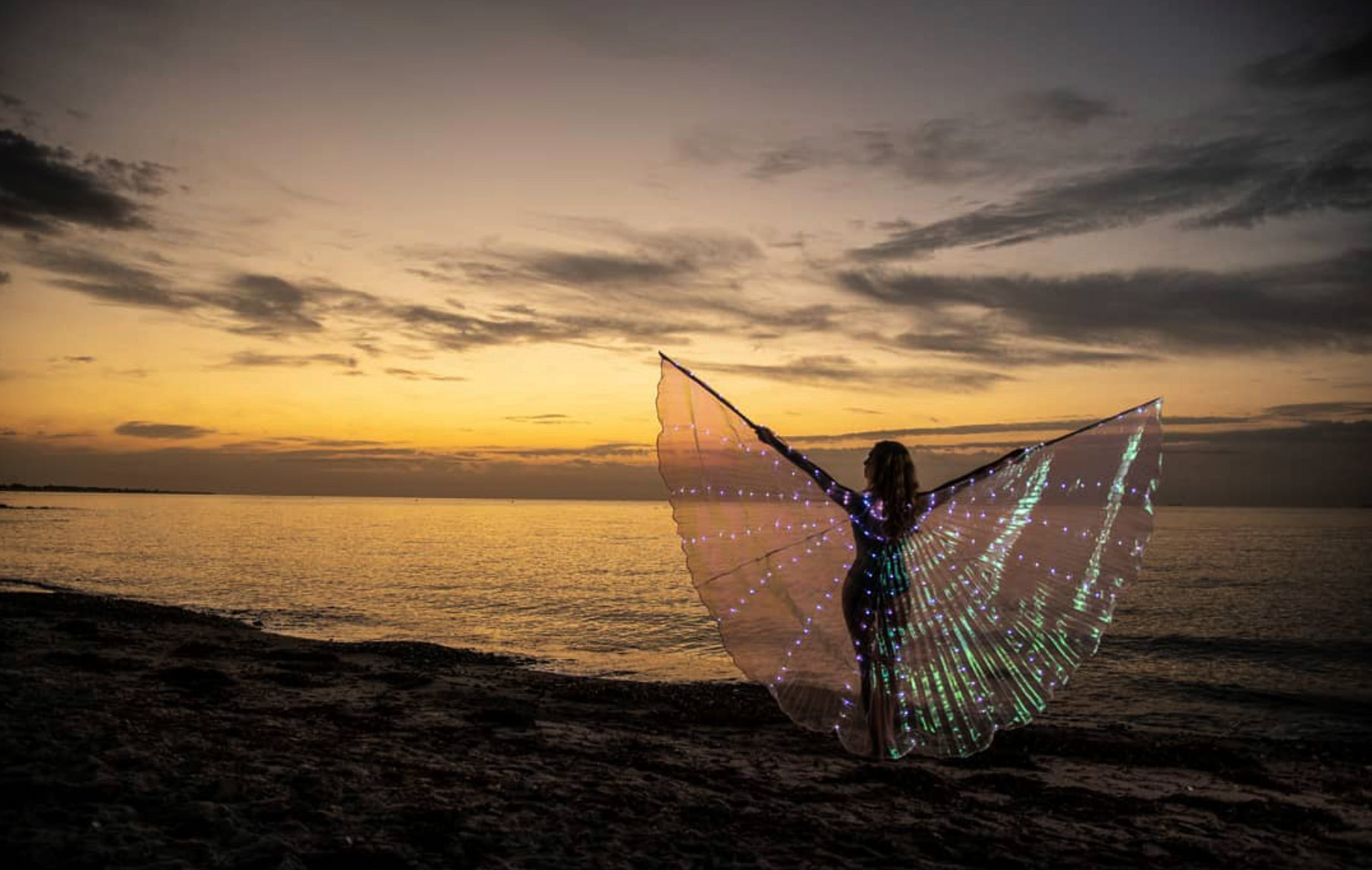 Begleitet von arabischer, türkischer oder griechischer Musik wird jede Darbietung zu einer Reise in die farbenprächtige Welt des Orients. Leidenschaft, Magie und exotische Atmosphäre verschmelzen zu einem unvergesslichen Gesamterlebnis. Ob das Leuchten der LED-Flügel in der Dämmerung, die fließenden Schleier oder die kraftvollen Tanzfiguren – jeder Moment vereint Tradition, Moderne und puren Showzauber, der Ihre Gäste verzaubern wird.