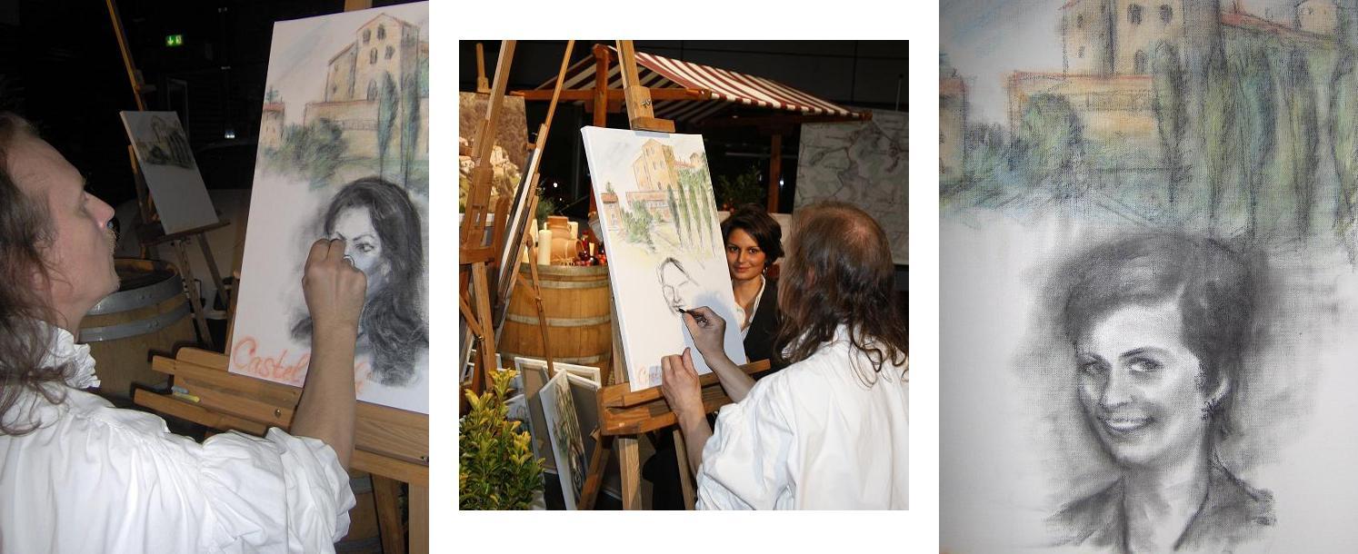 - Porträtisten: nehmen sich 10–15 Minuten Zeit, um die Persönlichkeit Ihrer Gäste detailgetreu und elegant einzufangen.